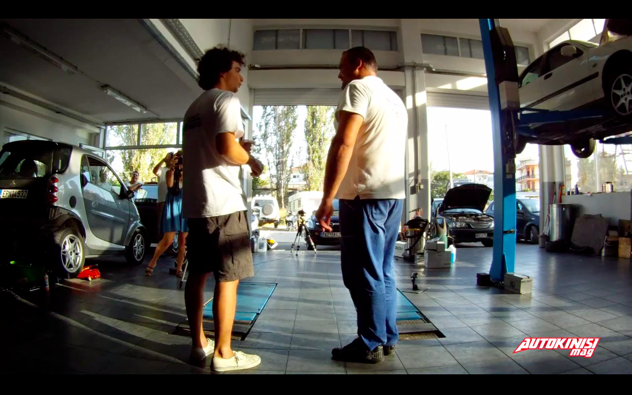 Ο Ηλίας αν και εμφανώς κουρασμένος μας υποδέχθηκε με χαρά - παρά την απρόσμενη επίσκεψή μας - και συμφώνησε να μιλήσει στην κάμερα του AutokinisiMag για τον αγώνα του Σεπτεμβρίου. Η επόμενη ημέρα δεν άργησε λοιπόν να έρθει και εμείς βρεθήκαμε για ακόμη μια φορά στις Σέρρες. Η αλήθεια είναι πως ήμασταν στο συνεργείο του Ηλία αρκετά νωρίτερα από το προκαθορισμένο και έτσι είχαμε άπλετο χρόνο για να μελετήσουμε το χώρο και να αποφασίσουμε που θα πραγματοποιήσουμε τη συνέντευξη. Αφού περιμέναμε ώστε να καθαριστεί ο χώρος (δεν έχετε συναντήσει πιο καθαρό συνεργείο, πιστέψτε μας), πήραμε τις θέσεις μας και η συνέντευξη με τον Ηλία Σιδηρόπουλο ήταν πια γεγονός.