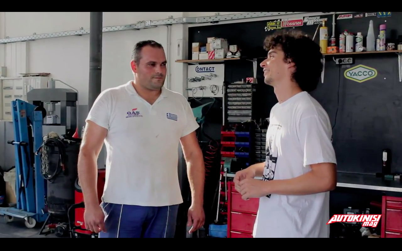 Ο Ηλίας αν και εμφανώς κουρασμένος μας υποδέχθηκε με χαρά - παρά την απρόσμενη επίσκεψή μας - και συμφώνησε να μιλήσει στην κάμερα του AutokinisiMag για τον αγώνα του Σεπτεμβρίου. Η επόμενη ημέρα δεν άργησε λοιπόν να έρθει και εμείς βρεθήκαμε για ακόμη μια φορά στις Σέρρες. Η αλήθεια είναι πως ήμασταν στο συνεργείο του Ηλία αρκετά νωρίτερα από το προκαθορισμένο και έτσι είχαμε άπλετο χρόνο για να μελετήσουμε το χώρο και να αποφασίσουμε που θα πραγματοποιήσουμε τη συνέντευξη. Αφού περιμέναμε ώστε να καθαριστεί ο χώρος (δεν έχετε συναντήσει πιο καθαρό συνεργείο, πιστέψτε μας), πήραμε τις θέσεις μας και η συνέντευξη με τον Ηλία Σιδηρόπουλο ήταν πια γεγονός.