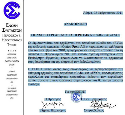 Επίσχεση Εργασίας στα περιοδικά "CAR" και "EVO" -